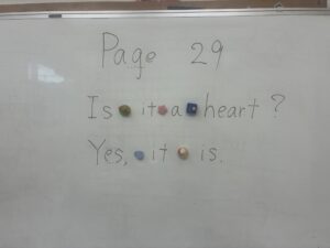 ↑↑↑そろそろ4本線をホワイトボードには書かないようにします。どの文字が基本線を上下するかを覚えましょう。